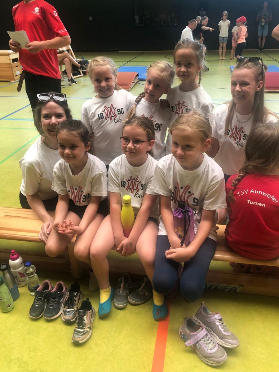Etwas „ernster“ ging es beim Geschicklichkeitswettbewerb der 4-bis 6jährigen zu. Hier wurden Zeiten gestoppt und Punkte gezählt. Es kam u.a. darauf an, schnell über Bälle zu balancieren, möglichst viele Hüpfer auf Stepper zu machen, Sandsäckchen genau in Reifen zu treffen. Die drei Teams des TVR gaben ihr Bestes und sicherten sich mit überragender Punktezahl jeweils eine Goldmedaille. Eifrige Punktesammler waren: Felicitas Bauer, Tobias Geiger, Lotta Gehrlein, Thea Wollherr, Max Bockholt, Linus Marz, Felix Ertel, Julia Birkel, Henry Klimesch, Felix Schenk und Mail Leonhart. Ihr wart spitze! Für den Turnnachwuchs ab sieben Jahre standen Mannschaftswettkämpfe (bestehend aus Boden- und Sprungübung, Schlagball werfen und 50m Lauf) auf dem Programm. Die Mädchen (8 Jahre und jünger) Lea Geiger, Nele Bockholt, Frieda Pfirrmann, Leah Buchberger, Noelie Leingang und Josefine Steiner lieferten tolle Leistungen ab und erhielten dafür eine Silbermedaille. Das Gleiche gelang dem Mädchenteam (12 Jahre und jünger) mit Emma Bouché, Emily Romanska, Sana Shoukuh, Marie Sickinger und Marla Dilbilir. Herzlichen Glückwunsch an alle! Die Kinder waren sehr gut auf ihren ersten Wettkampfeinsatz vorbereitet. Dafür Dank an die Trainer, Olly Nauke, Rosi Weber, Andrea Fried, Laura und Sarah Hägele und Elena Müller. Der Turnverein möchte sich auch herzlich bei den Eltern bedanken, die die Betreuung der Mannschaften übernommen haben und ihre Kinder anfeuerten. So ein Turnfest ist einfach immer ein besonderes Erlebnis. Nächstes Jahr sind wir natürlich wieder mit dabei!