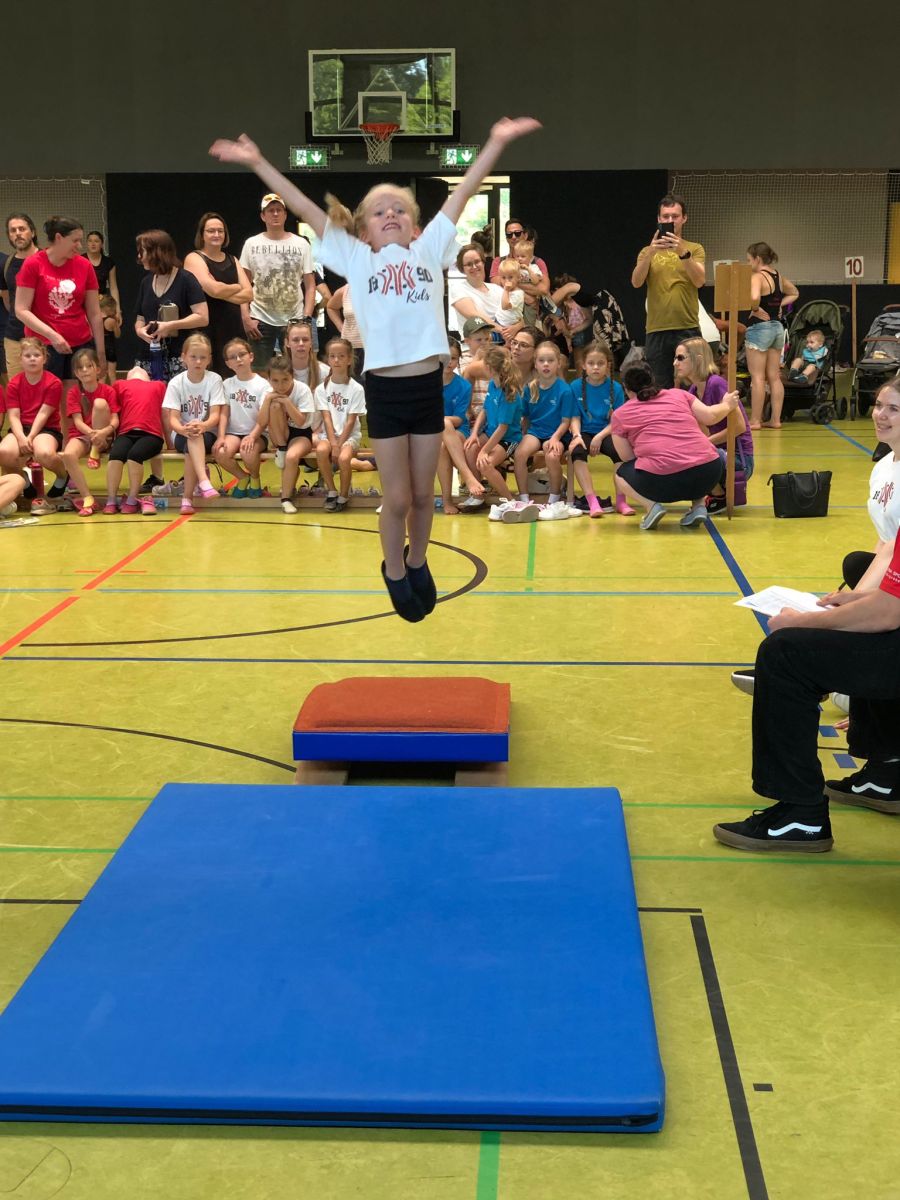 Endlich hieß es wieder: „Auf zum Gaukinderturnfest!“. Das Highlight des allgemeinen Kinderturnens für Kids im Alter zwischen 1-14 Jahren fand nach dreijähriger Coronapause am Samstag, 15. Juli im schönen Südpfalzstadion in Landau statt. Hier gleich ein großes Lob an den Ausrichter ASV Landau, der für die insgesamt ca 550 Nachwuchsturner*innen einen einwandfreien Ablauf dieser Breitensportveranstaltung sorgte. Vom TV Rheinzabern gingen an den unterschiedlichen Wettkämpfen knapp 40 Kinder an den Start. Für die Kleinsten (2- bis 3jährige) war ein Parcour mit 6 Stationen aufgebaut, die sie alleine oder mit den Eltern bewältigen durften. Dafür gab es Stempel und zum Schluss eine hochverdiente Medaille als Belohnung. Bei diesem ersten „Wettkampf“ hatten ihren Spaß: Leonie Braumandl, Ela Ertel, Phine Gehrlein, Sophia Geiger, Johanna Hahn, Tamara Hänel, Finn Huber, Julia und Fabian, Könker, Anton, Leingang, Arian Leonhart, Juli Pfirrmann und Elisa Raak.
